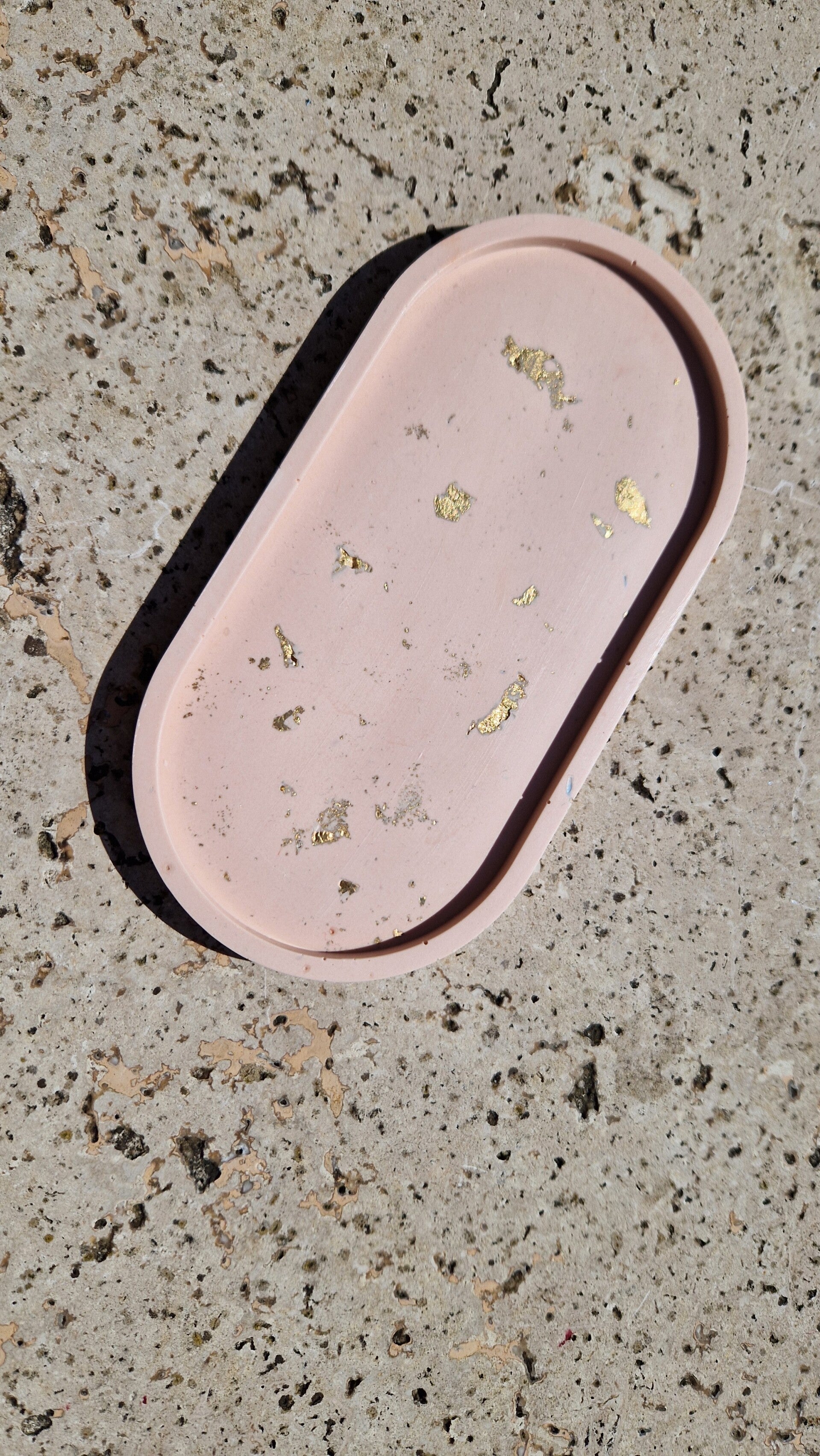 Vide poche ovale - rose clair avec feuille d'or